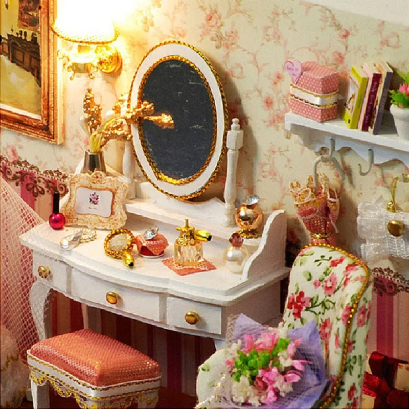 Acheter Mini DIY Dollhouse Jouets Pour Enfants Enfants Kit Miniature Modèle Avec Couvercle Lumière Meilleur Cadeau de Noël Maison de Poupée Meubles Poupées jouet Pas Cher Prix
