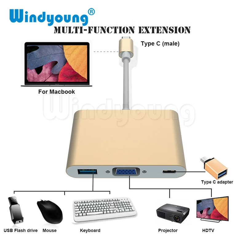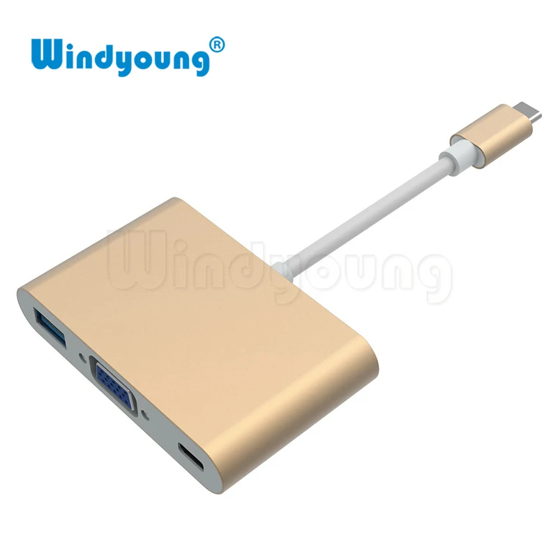 Achat USB 3.1 Type C À VGA USB3.0 Type C Adaptateur Mâle À Femelle Convertisseur Hub De Charge Port pour MacBook Google Chromebook Pas Cher En Ligne