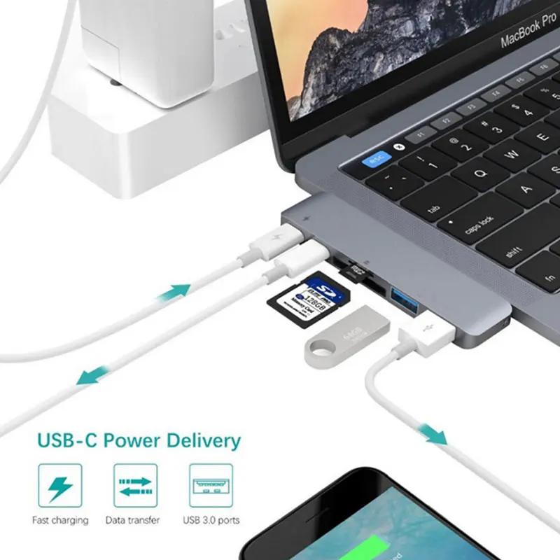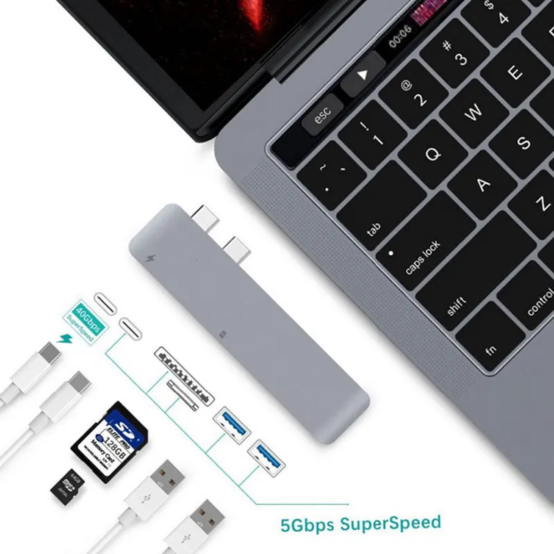 Achat Meilleur Double USB 3.1 Type C HUB Pour Lecteur De Carte USB C Hub 3.0 Adaptateur Combo avec TF Slot SD pour MacBook Pro 2016 2017 USB C Pouvoir Livrer Pas Cher En Ligne.