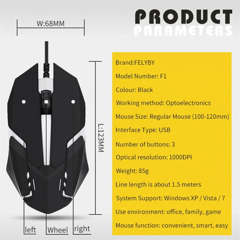 Vente Meilleur FELYBY Bureau Professionnel USB Filaire Souris Ergonomique pour Ordinateur Portable Optique Portable Souris avec Tapis De Souris de jeu Pas Cher Prix.