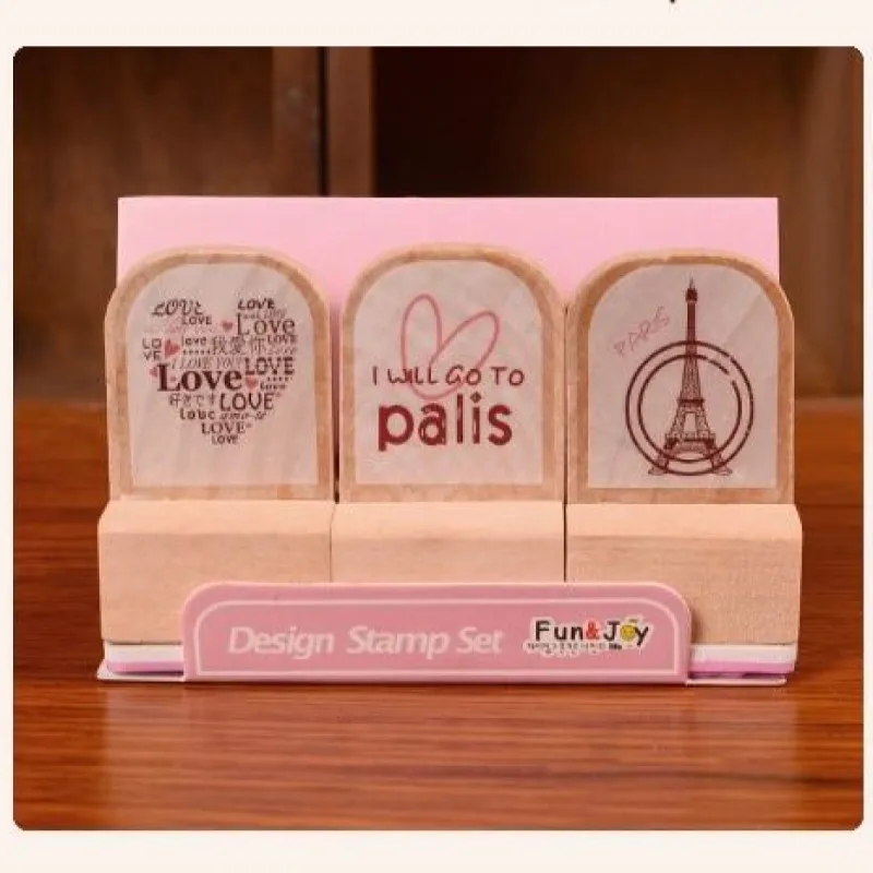 . Vente 3 pcs pack album timbre en bois ensemble BRICOLAGE artisanat amour moustache Paris café conception papeterie passe temps Pas Cher Prix.