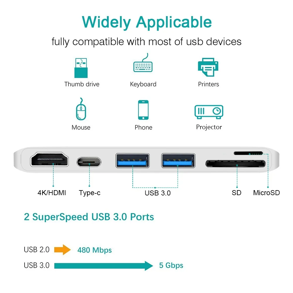 . Achat GOOJODOQ USB C Hub avec HDMI pour Macbook Nintendo Commutateur 6 dans 1 USB C Hub 2 USB 3.0 Splitter Adaptateur TF SD Lecteur de Carte Type C Pas Cher Prix.