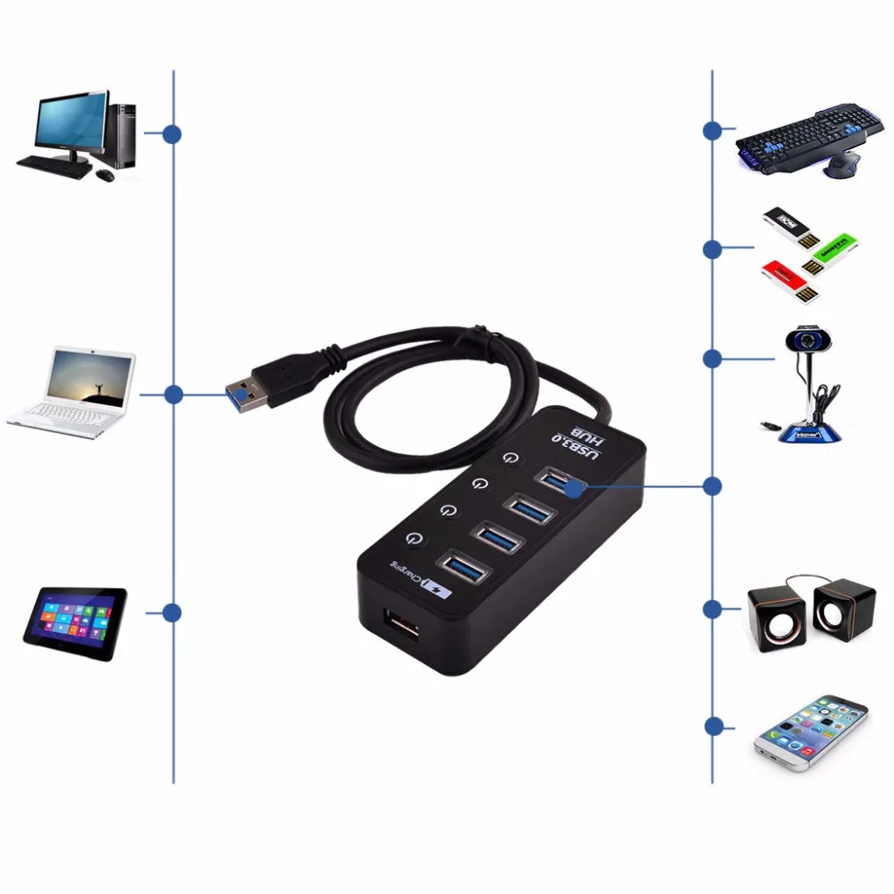 Achat 4 Ports USB 3.0 HUB Splitter avec Puissance De Charge Port et Commutateur Multiple USB Splitter Porta Panneau USB3.0HUB noir Pas Cher Prix