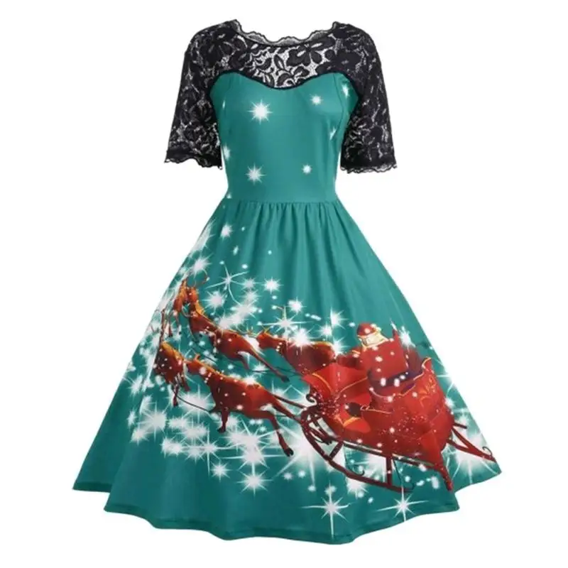 Vente Meilleur 1 pcs Sur Le Thème De Noël Sexy See through Dentelle Reconstituer Mince Taille Flare Robe Femme Père noël Multi Couleur Options plus la Taille 3XL Pas Cher En Ligne.