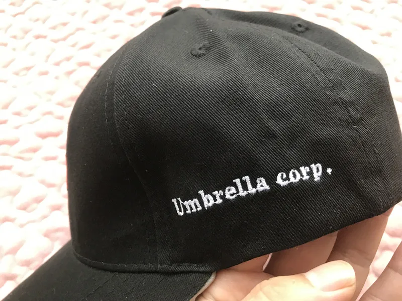 Achat Meilleur Resident Evil Biohazard Umbrella Corporation Logo Anime Noir Snapback Chapeau Cosplay Casquette de baseball Pas Cher En Ligne.
