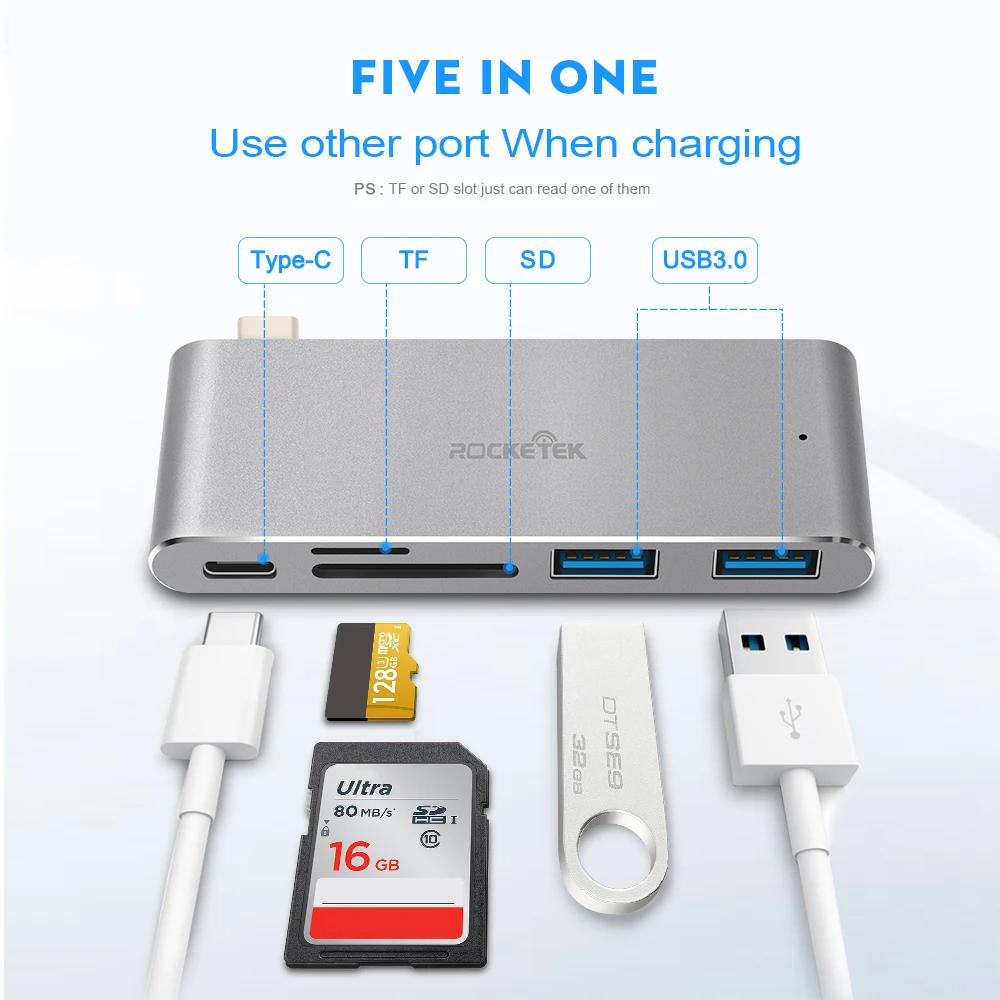Achat Meilleur Rocketek multi usb type c 3.0 hub port adaptateur Power Interface splitter SD TF Lecteur de Carte pour MacBook pro pc ordinateur portable accessoires Pas Cher Prix.