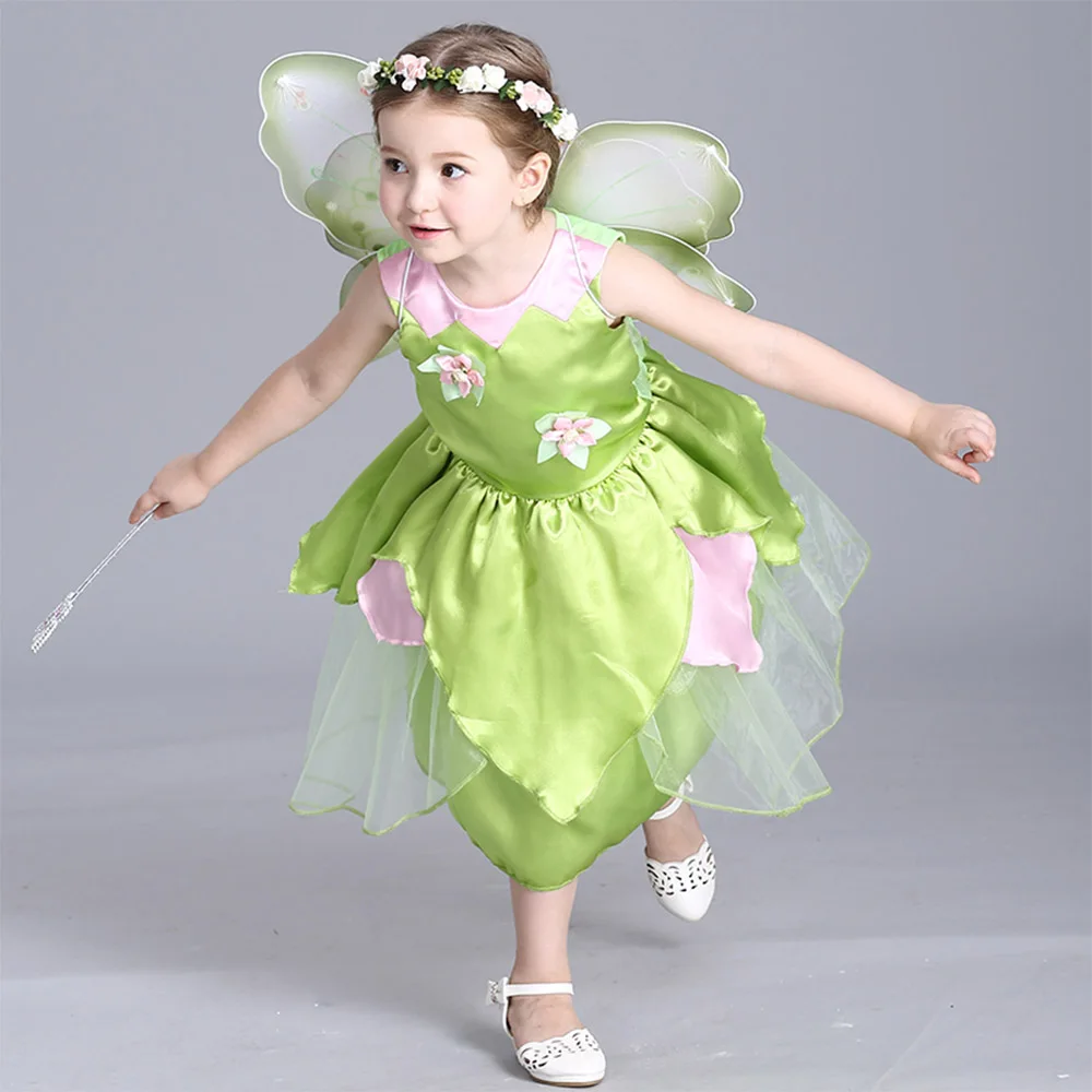 Acheter Meilleur 2018 Nouveau Tinkerbell princesse Woodland Fée Robe Cosplay Costume Filles Vert Fée Robe pour 3 10Y enfants (sans aile) Pas Cher Prix.