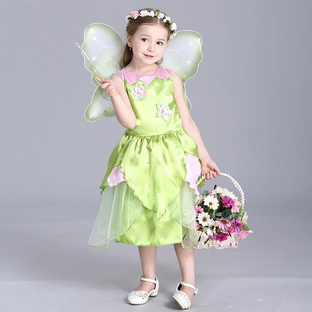 Achat 2018 Nouveau Tinkerbell princesse Woodland Fée Robe Cosplay Costume Filles Vert Fée Robe pour 3 10Y enfants (sans aile) Pas Cher En Ligne