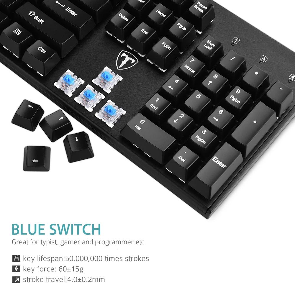 Vente Meilleur VicTsing USB Filaire 104 Touches Clavier de Jeu Bleu Interrupteur Mécanique Esport Clavier Ergonomique Anti ghosting Clavier Pour ordinateur de Bureau Pas Cher En Ligne.
