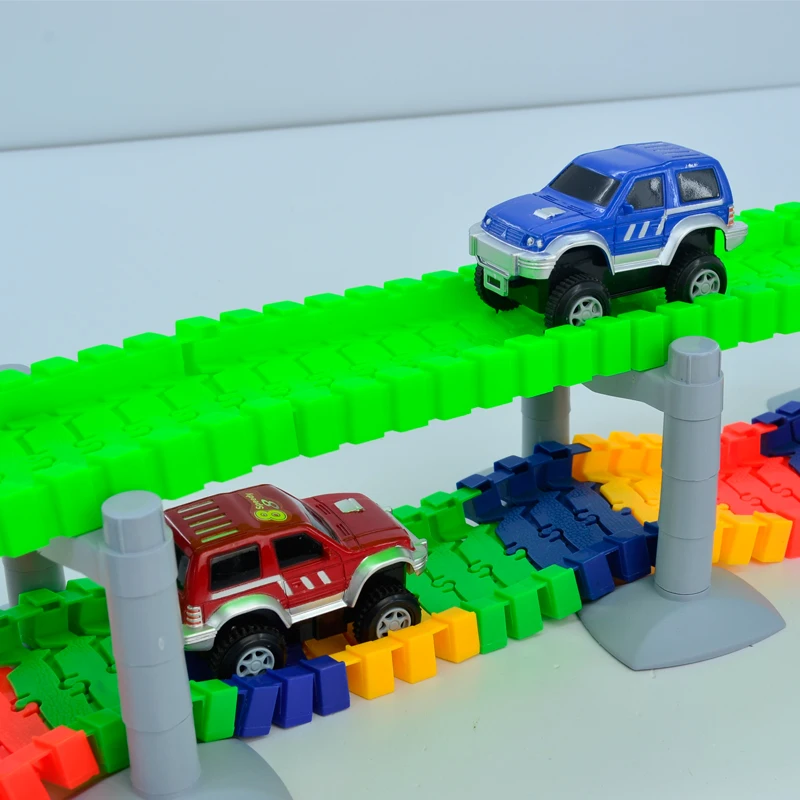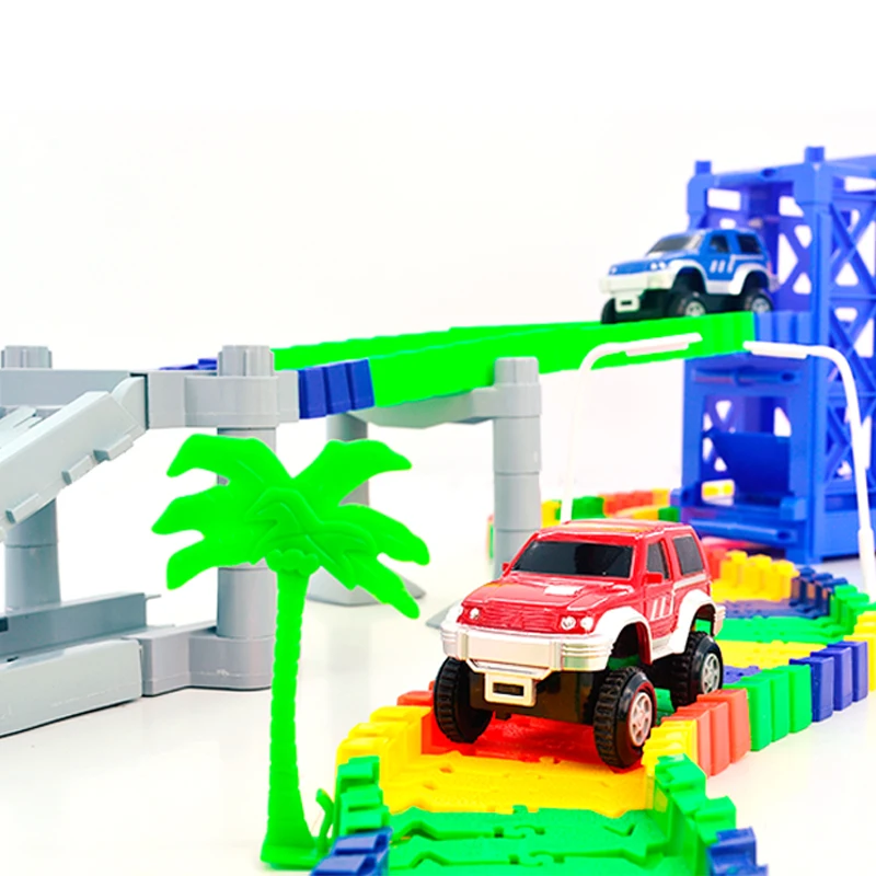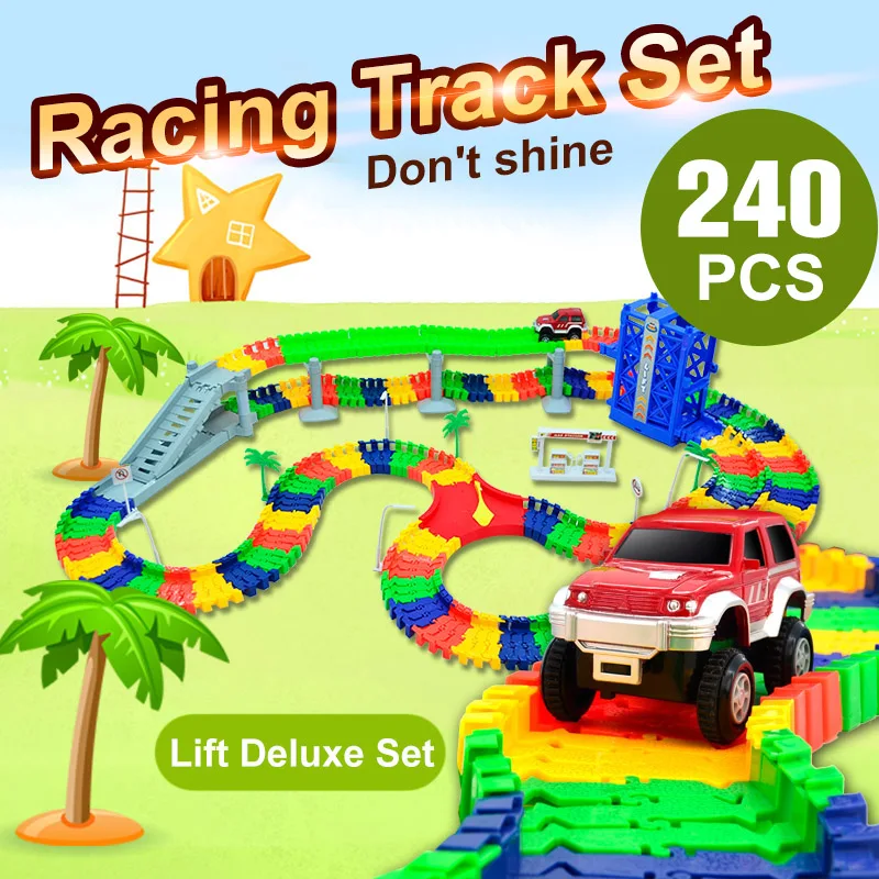 Vente Meilleur 240 pcs Piste de Course + 2 Pcs Voiture Miraculeuse Piste de Course Plier Flex Voiture Jouet Piste De Course Ensemble DIY Piste électrique Rail jouets pour garçons Pas Cher En Ligne.