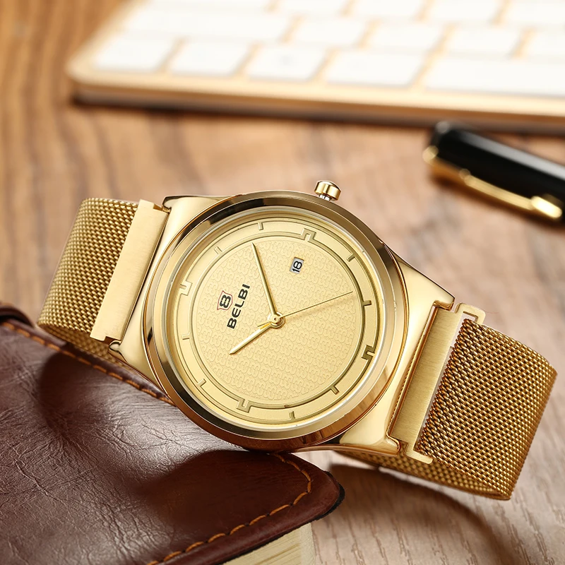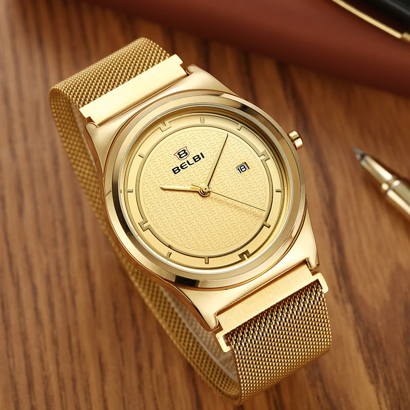 Achat Meilleur Belbi Couple Cadeau Montres Simple Conception Ronde avec Confortable Bracelet En Acier Lovers Horloge À Quartz Étanche Batterie Montres Pas Cher En Ligne.