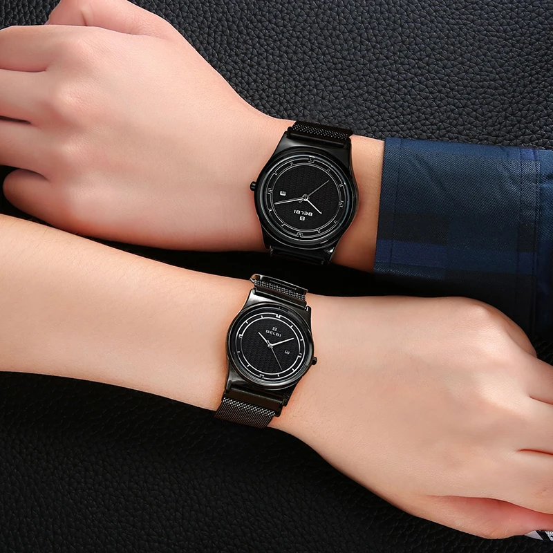 . Acheter Belbi Couple Cadeau Montres Simple Conception Ronde avec Confortable Bracelet En Acier Lovers Horloge À Quartz Étanche Batterie Montres Pas Cher Prix.