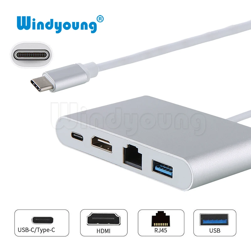 . Acheter Windyoung 4 dans 1 USB C Hub Adaptateur USB 3.1 Type C vers HDMI 4 k + Gigabit Ethernet RJ45 + USB 3.0 Multilport Digitatal Vidéo Convertisseur Pas Cher En Ligne.