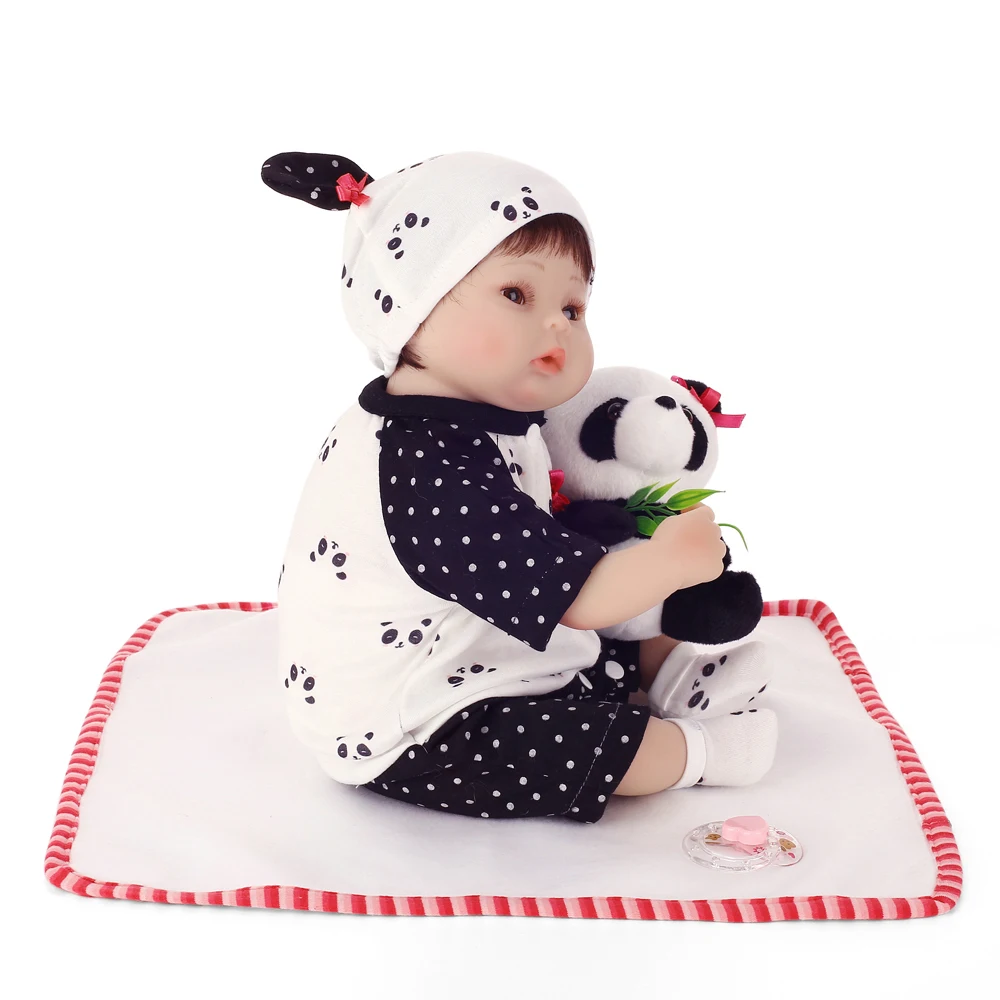 Achat 40 cm NPK Poupée Fille Reborn Bébé Cheveux Courts Réaliste Nouveau Né Bébé Poupée Panda Motif Tissu Vinyle Silicone Reborn Poupée 2018 Pas Cher En Ligne