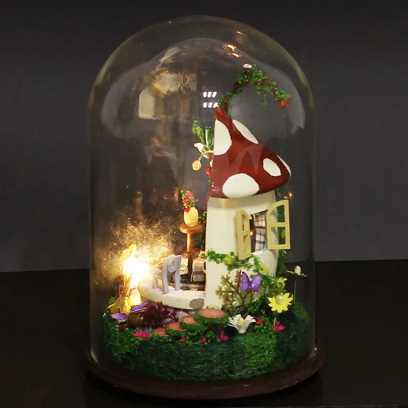 Achat Maison de poupée Meubles BRICOLAGE Accueil Main Maison Verre Assembler En Bois Miniature Moulin Couleurs Champignon Mignon Jouets pour Enfants Pas Cher En Ligne