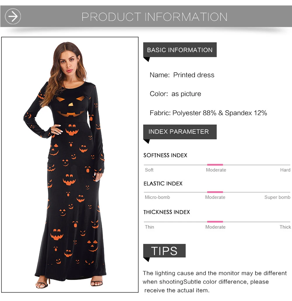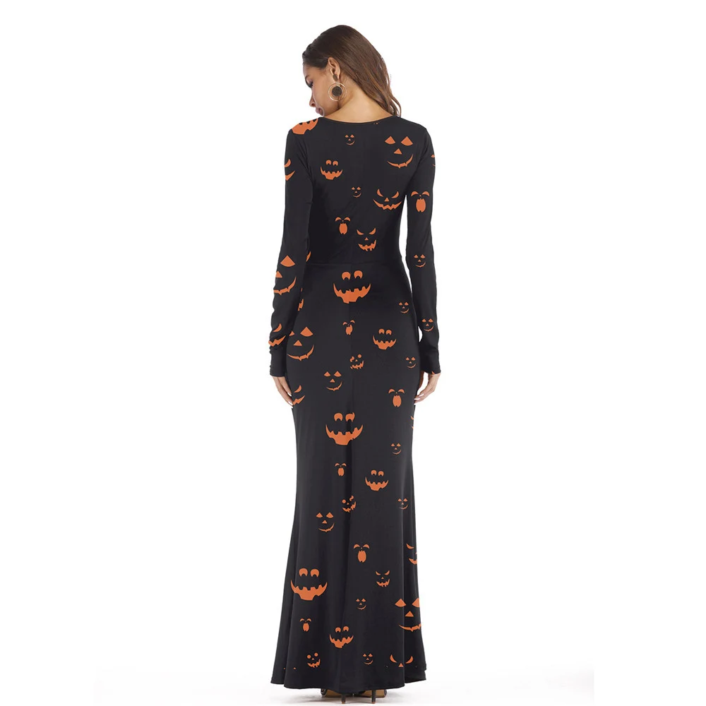 . Acheter 2018new Halloween Citrouilles Lanterne Longue Robe Effrayant Jaune Foudre Drôle Imprimé Sexy Partie Plus La Taille Cosplay Festival Robes Pas Cher Prix.