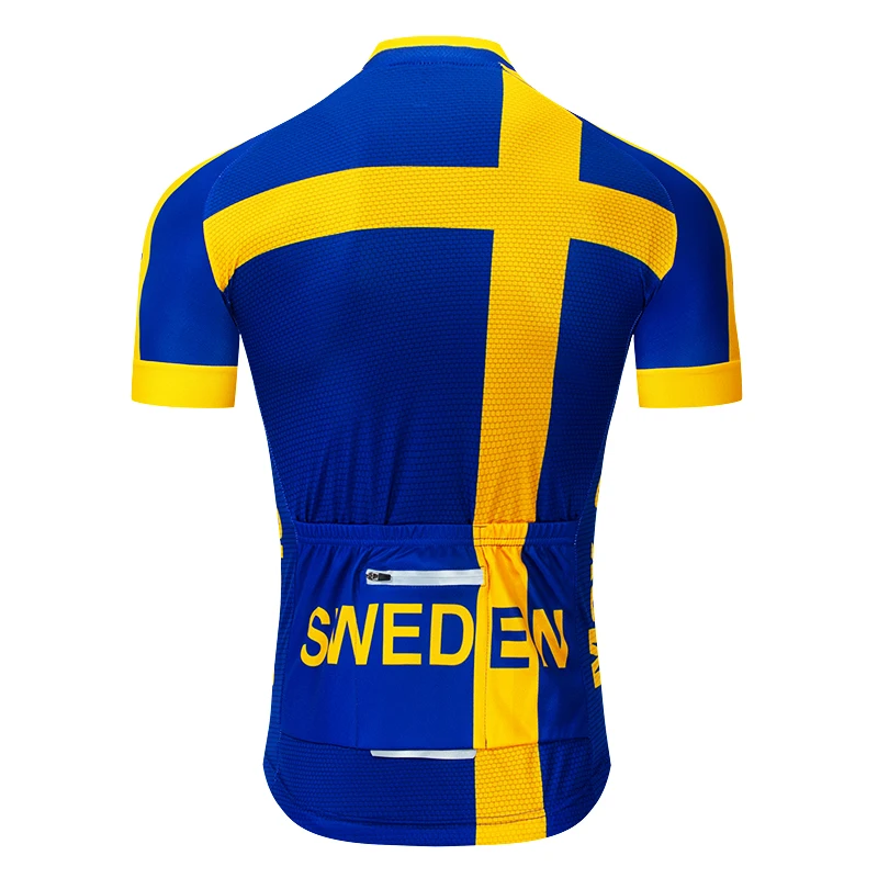 Acheter Meilleur 2019 Suède Nouvelle Équipe Cyclisme Maillot Personnalisé Route de Montagne Course Top max tempête Réfléchissant zipper 4 poche Pas Cher En Ligne.