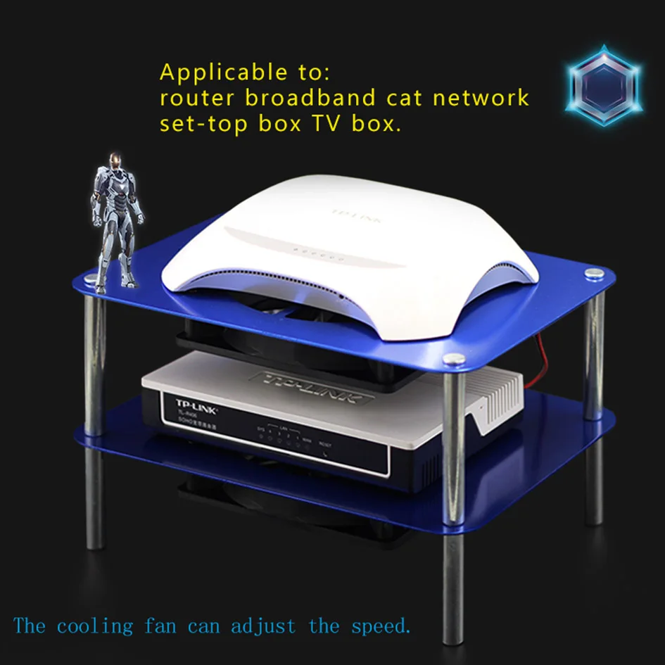 Vente WIFI routeur à large bande chat réseau set top box TV Refroidisseur De Refroidissement DC 5 v USB Ventilateur 120 double rack organisateur métal support à tablette Pas Cher Prix