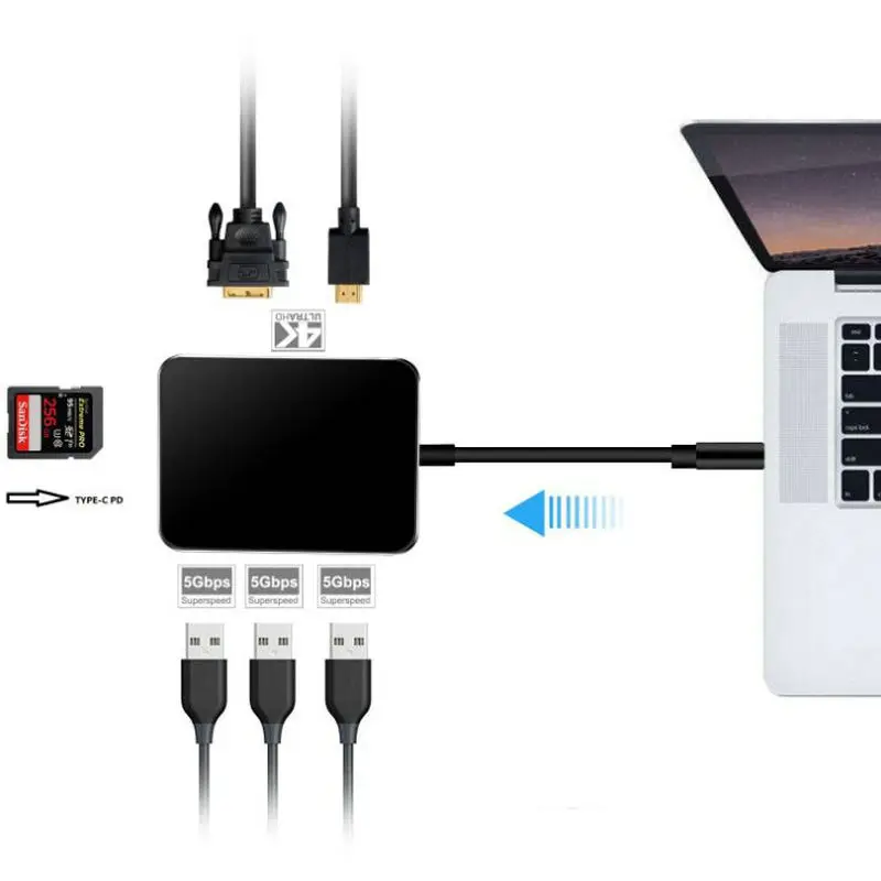 . Vente Grand Q nouveau 7 en 1 USB C HUB Type C À HDMI + VGA + USB3.0 + SD + TF Sept En Un Convertisseur USB C Multi Fonction Station D accueil Pas Cher En Ligne.
