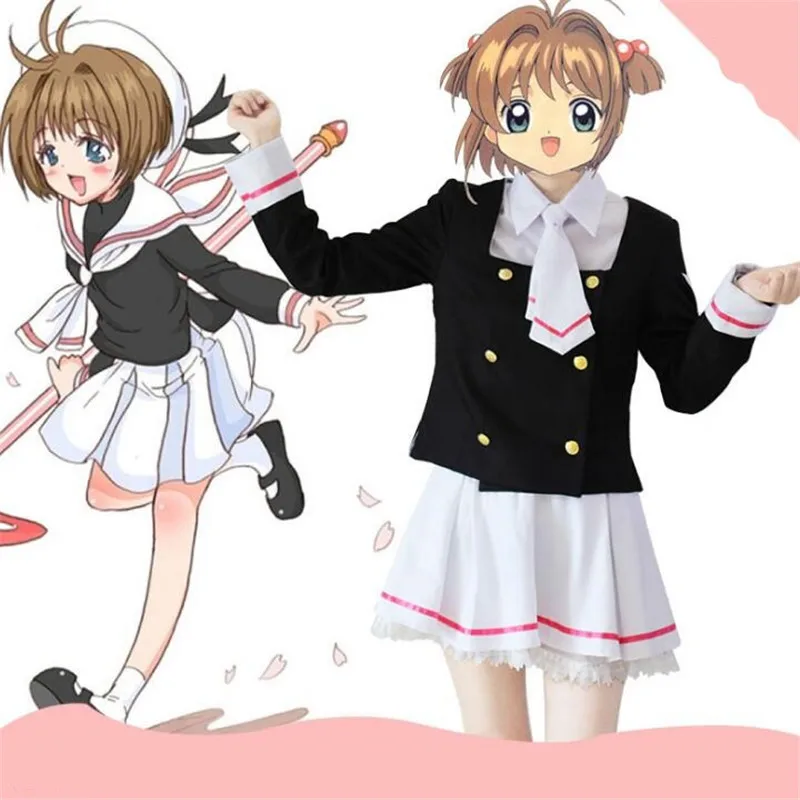 Achat Meilleur Japonais anime Card Captor Sakura KINOMOTO SAKURA Daidouji Tomoyo Cosplay Costumes Halloween Party Ensembles Robe Accessoires Pas Cher Prix.