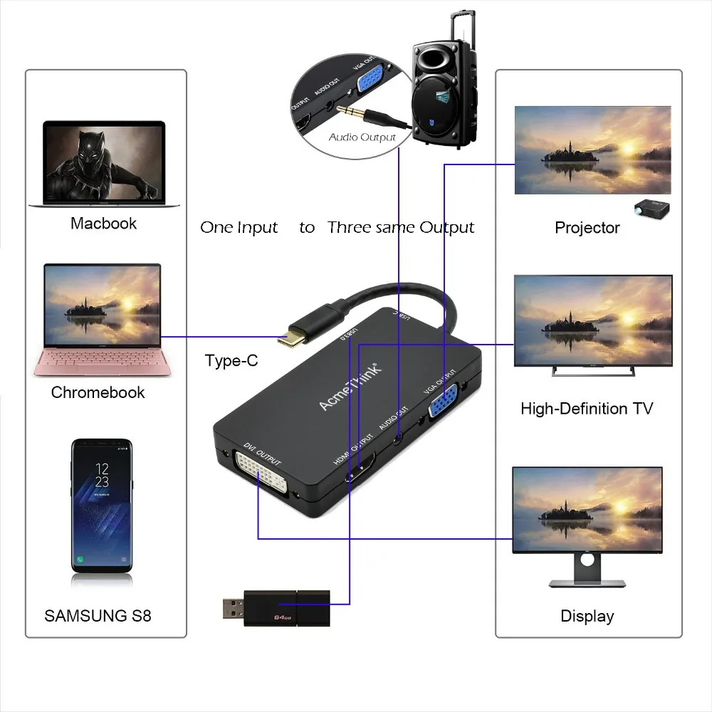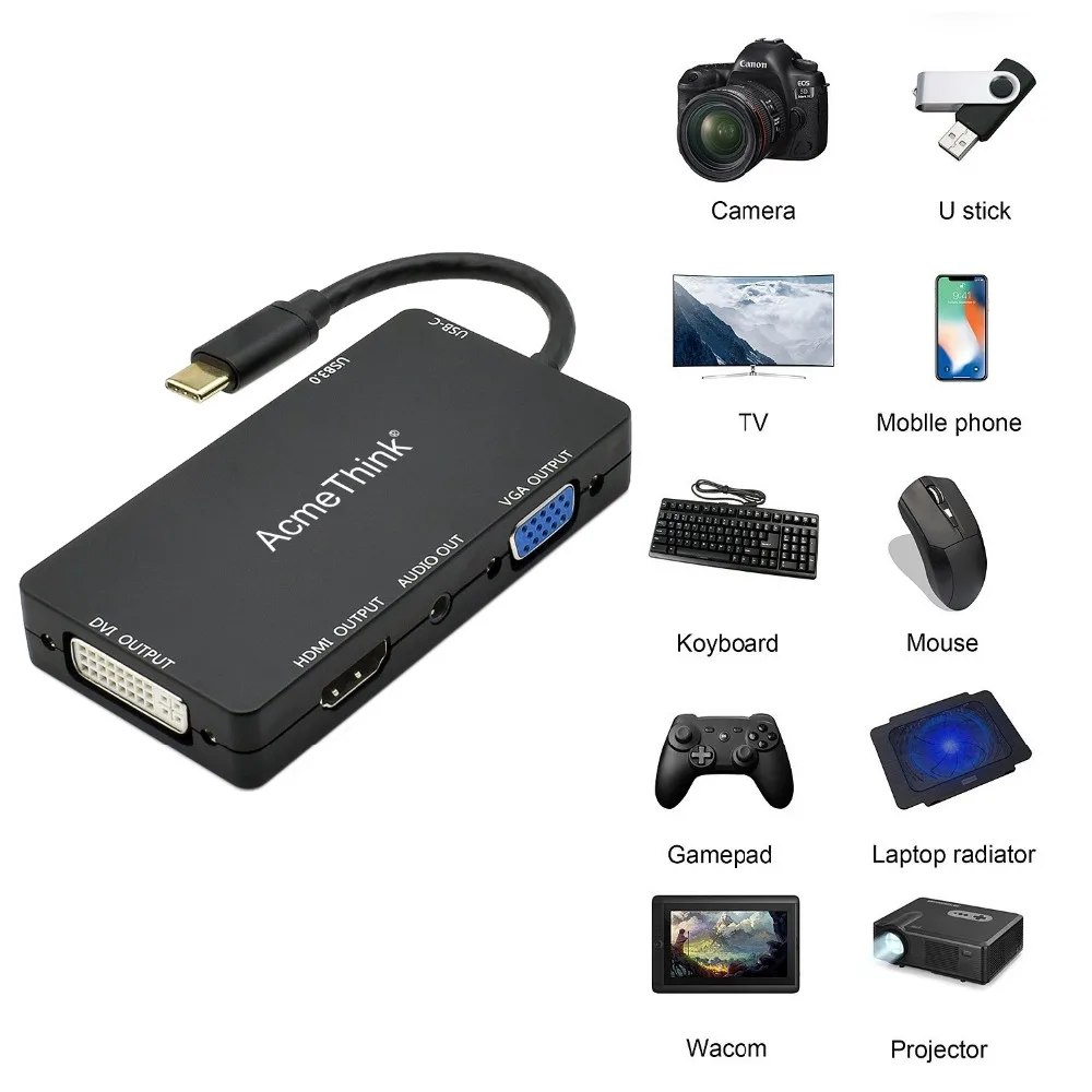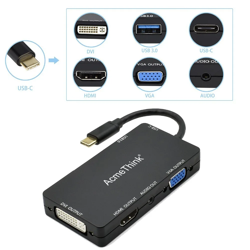 Acheter Meilleur Type C vers HDMI DVI VGA 3 dans 1 Adaptateur, acmeThink USB C Hub à 4 k HDMI DVI VGA Audio Adaptateur Convertisseur pour MacBook MacBook Pro Pas Cher Prix.