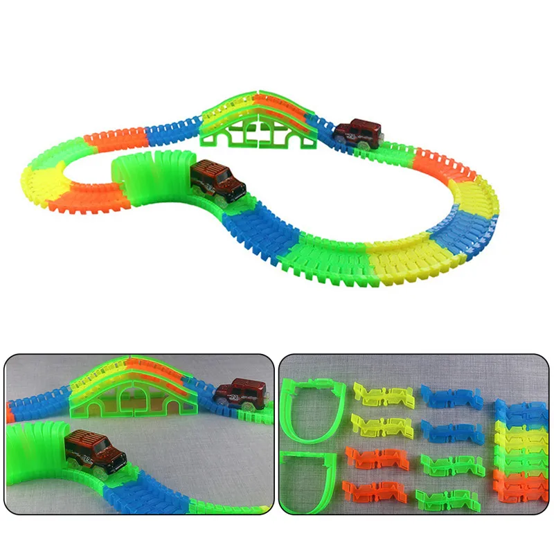 Vente Meilleur 110 128 238 360 PCs Mise À Jour Lumineux Voiture De Course Jouet Piste avec Tunnels DIY Flash Twister Piste lumineux Flexible Rail pour Mini Voitures Pas Cher Prix.