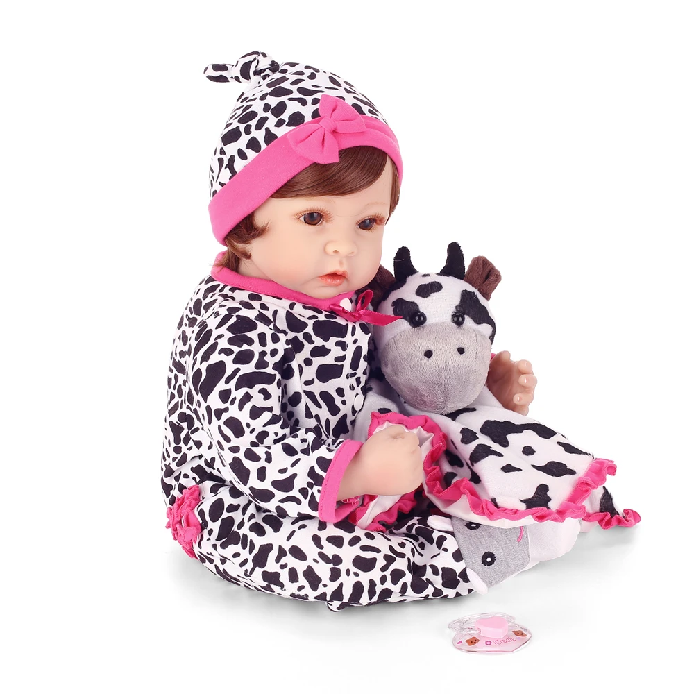 . Vente 22 pouces 55 cm NPK Poupée Fille Reborn Bébé Cheveux Courts Réaliste Nouveau Né Bébé Poupée Lait Vache Motif Tissu Vinyle silicone Reborn Poupée Pas Cher Prix.