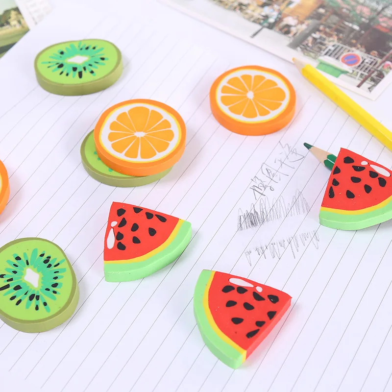 Vente Fruits Gomme Papeterie Gomme Mignon Fruits Modèle Multicolore En Caoutchouc Fournitures Scolaires de Bande Dessinée Maternelle Orange Kiwi Pastèque Pas Cher En Ligne