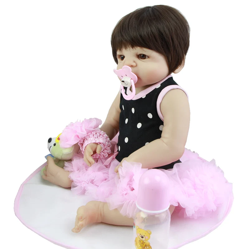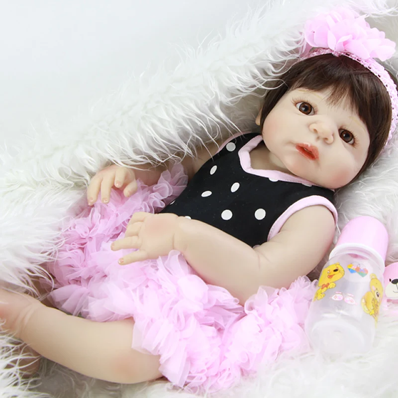 . Vente Plein Vinyle Poupée Reborn 23 pouce Réaliste Fille Bébés Cheveux Perruque Réaliste Enfants Jouet Doux Vivant Bébé Poupées Enfants D anniversaire cadeau de noël Pas Cher Prix.