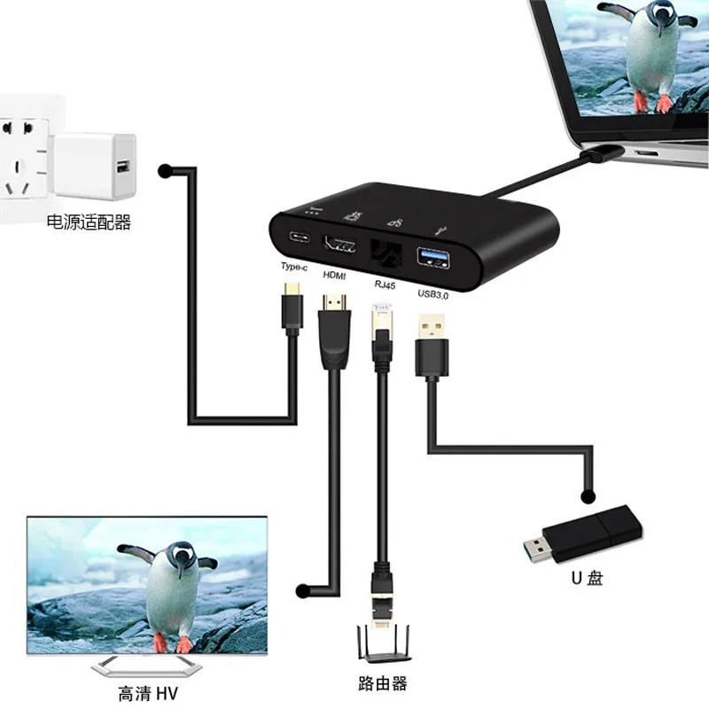 Acheter Meilleur Basix usb 3.1 type c hub hdmi ethernet RJ45 + USB3.0 + type c pd charge Gigabit Ethnernet usb c moyeu à hdmi adaptateur multiport Pas Cher En Ligne.