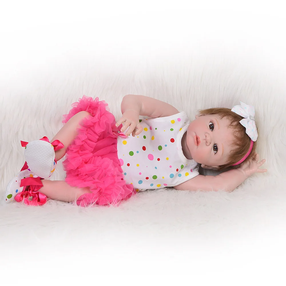Achat Meilleur Pleine Vinyle De Silicone Réaliste Reborn Bébé Poupées 23 pouce Nouveau Né Bébés Fille Qui Ont L air Réel Princesse Jouet Enfants D anniversaire De Noël cadeau Pas Cher Prix.