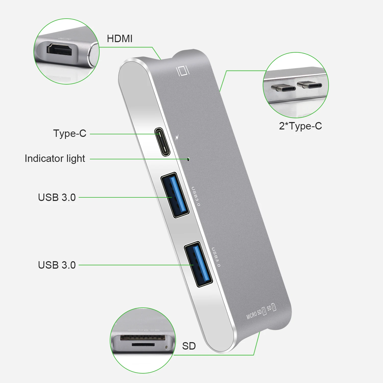 Acheter USB Type C HUB à HDMI 4 k USB C Adaptateur avec SD Micro SD TF Lecteur de carte PD Puissance Port Combo Double USB 3.0 ports pour MacBook Pro Pas Cher En Ligne