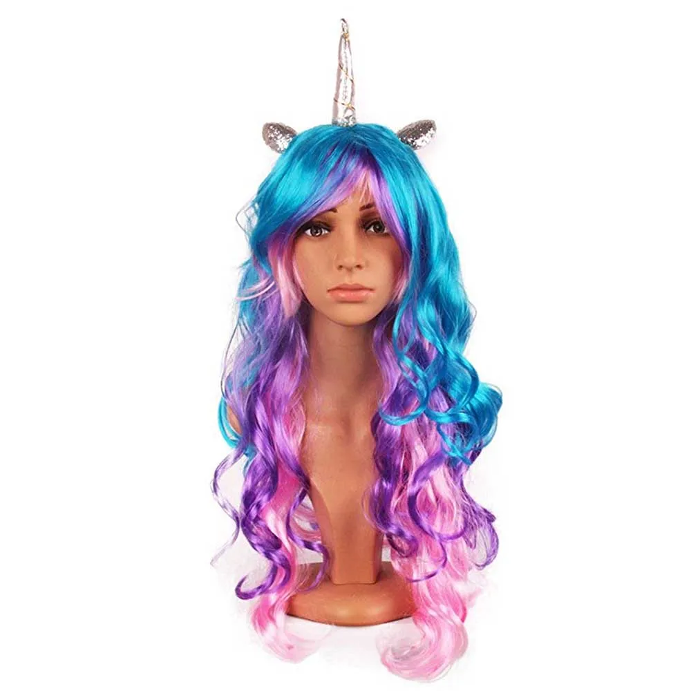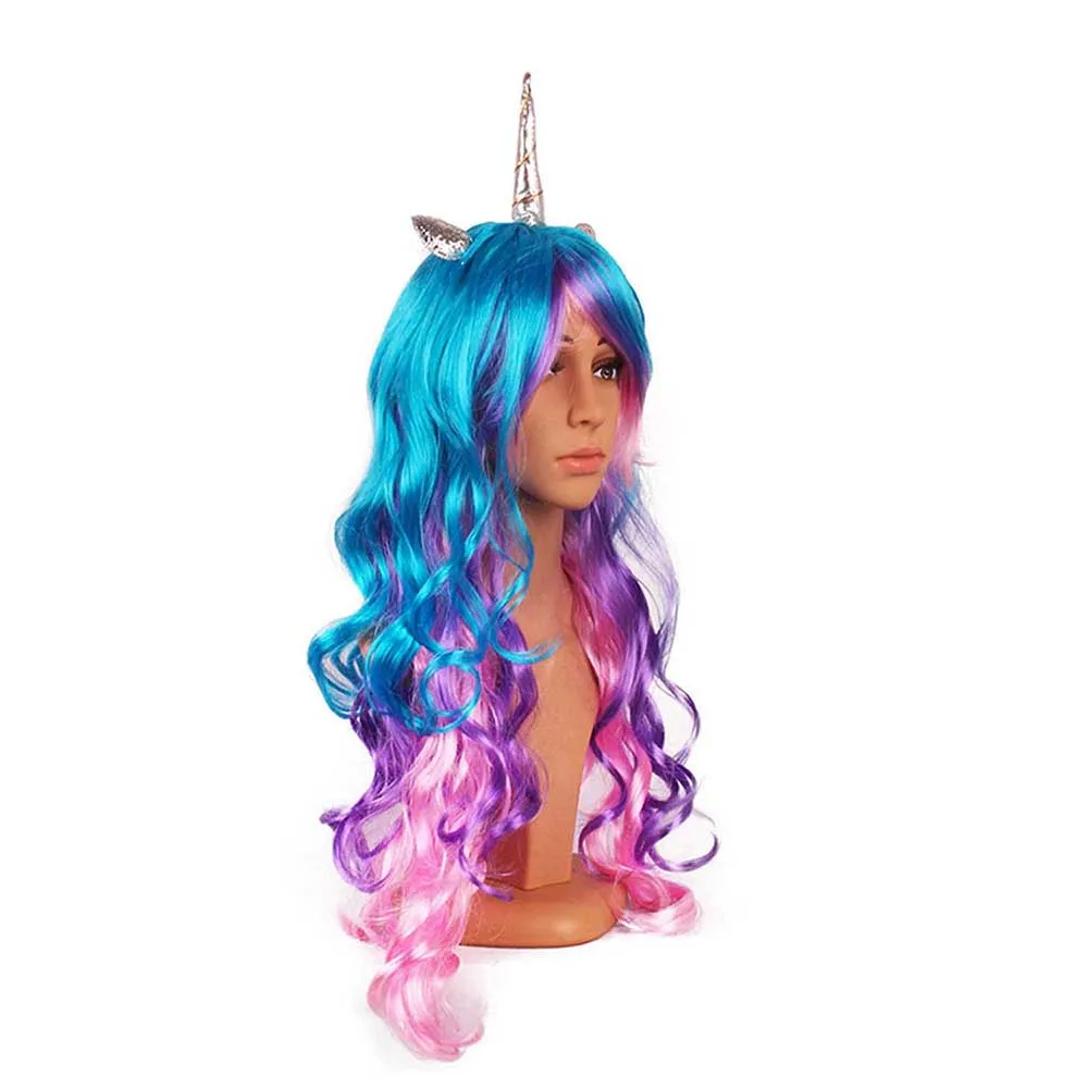 Achat Meilleur Femme de Cosplay Arc En Dash avec Licorne Petits Poneys Contes Crépuscule Étincelle Néon Long Bouclés Cheveux Beauté Cheveux Synthétiques Pas Cher En Ligne.