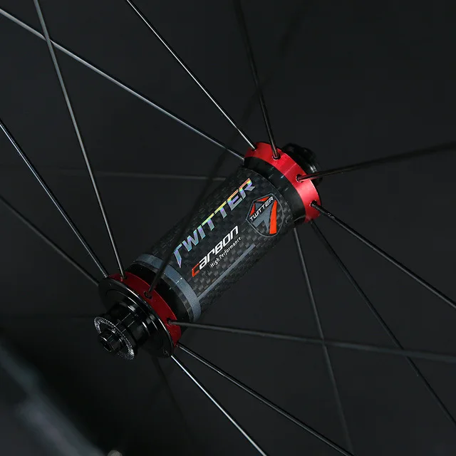 Achat TWITTER Route Vélo 700c AL7075 Roues F100 R130 Fiber De Carbone Hub 4 Roulement Avant 18 Arrière 21 Soutien 8 9 10 11 vitesse Cassette Pas Cher Prix