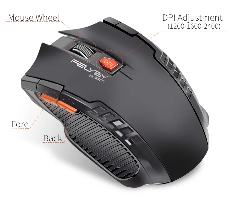 Achat Meilleur Vente chaude!!! FELYBY Haute Qualité 2.4 ghz 2400 dpi 6 boutons souris USB Optique Sans Fil Souris De Jeu pour Ordinateur Portable Pas Cher Prix.