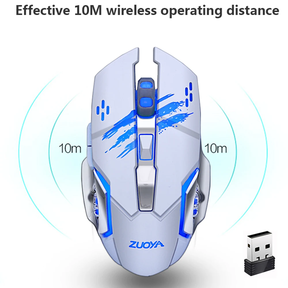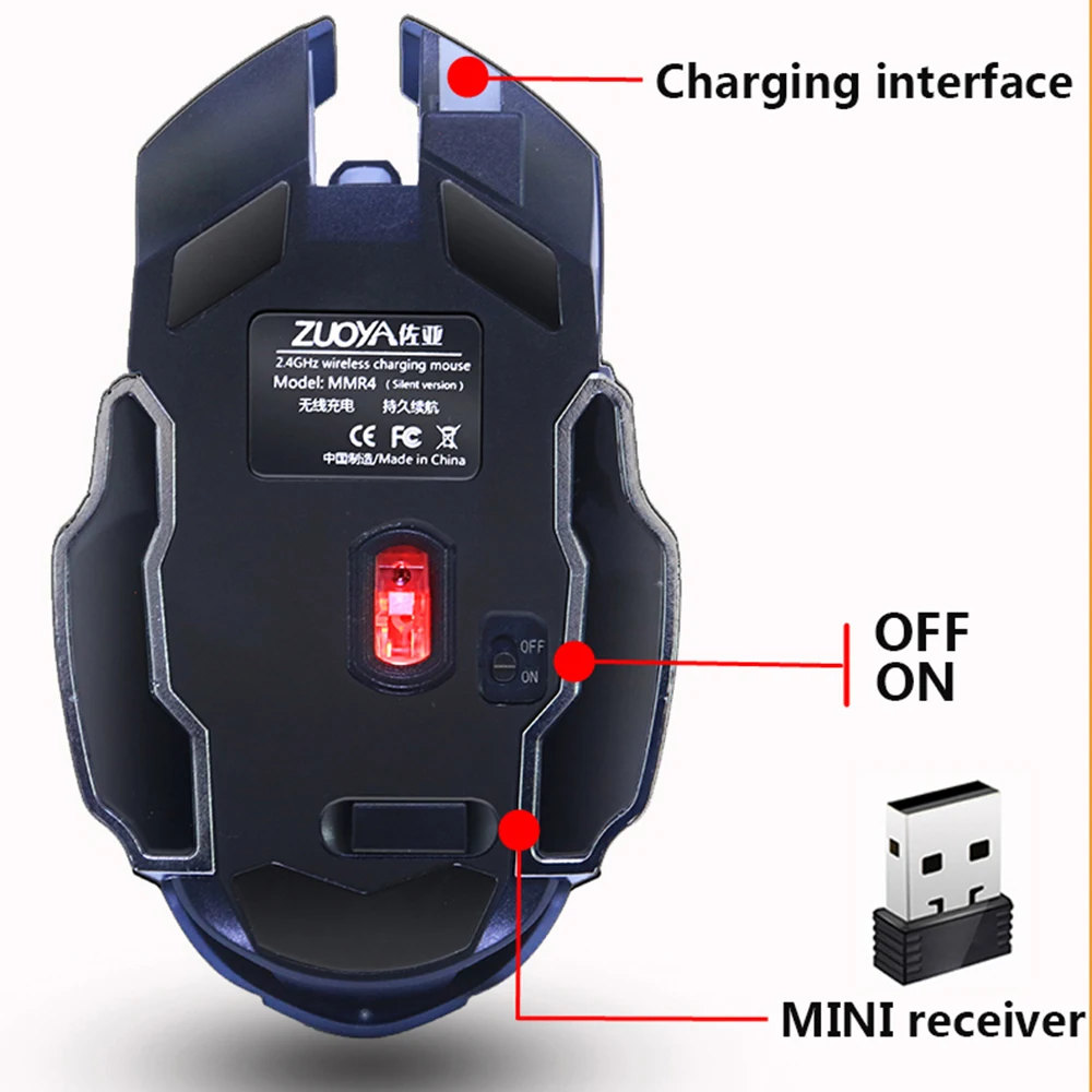 . Acheter ZUOYA 2.4 ghz Silencieux de Jeu Sans Fil Souris Adjustable2000DPI Rechargeable Rétro Éclairage Souris USB LED Souris Optique de Jeu Pour PC Ordinateur Portable Pas Cher En Ligne.
