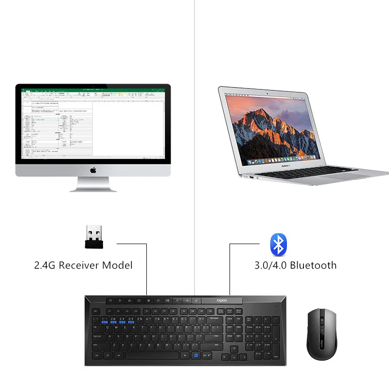 Acheter Meilleur Nouveau Rapoo 8200 m Multi mode Silencieux Sans Fil Clavier Souris Combos Bluetooth 3.0 4.0 RF 2.4g interrupteur entre 3 Connexion de Périphériques Pas Cher En Ligne.