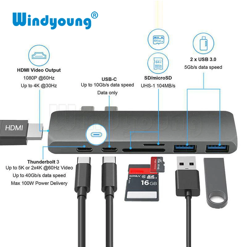 Acheter 7 dans 1 Daul USB 3.1 Type C HUB avec 4 k HDMI Thunderbolt 3 Type C PD Adaptateur De Charge SD TF Lecteur de Carte USB 3.0 Hub pour MacBook Pas Cher Prix