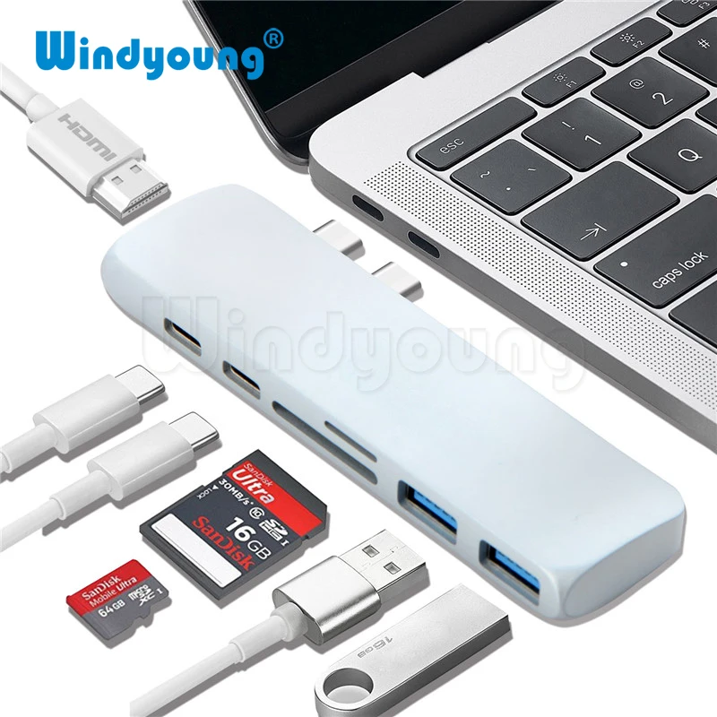 Achat Meilleur 7 dans 1 Daul USB 3.1 Type C HUB avec 4 k HDMI Thunderbolt 3 Type C PD Adaptateur De Charge SD TF Lecteur de Carte USB 3.0 Hub pour MacBook Pas Cher En Ligne.