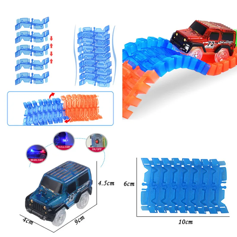 Acheter DIY Assemblée Pistes Moulé Sous Pression Voitures PVC Mini Flash Roues de Voie Ferroviaire Route Kart Voitures Modèle Jouets pour Enfants cadeau De Noël Pas Cher Prix