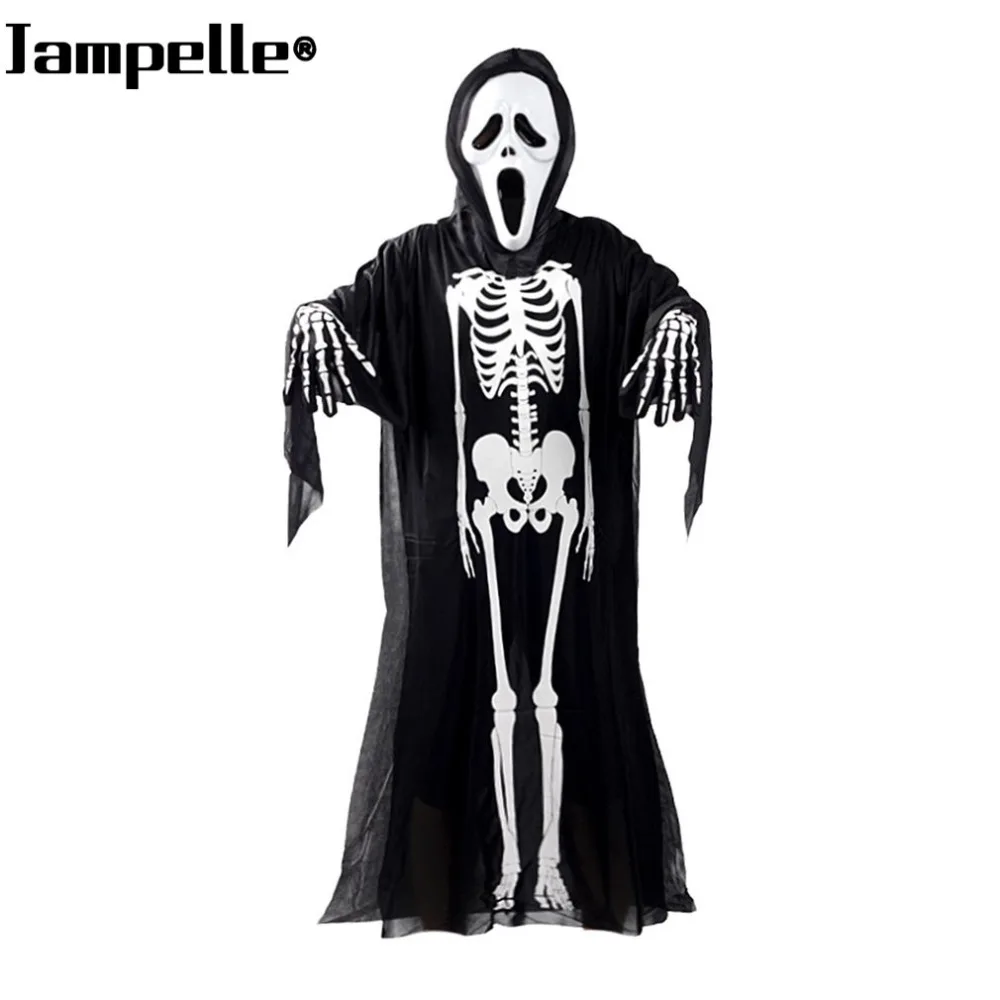 Acheter Halloween Costume Crâne Squelette Démon Fantôme Cosplay Costumes Adultes Enfants Enfants Carnaval Mascarade Robe Robes Effrayant Masque Pas Cher En Ligne