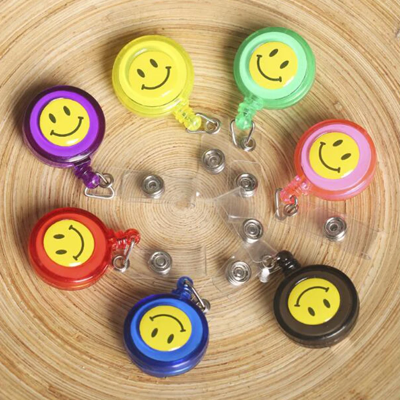 Achat Meilleur Mode 20 Pièces Rétractable Bobine Lanière Visage Souriant Carte Porte Badge École Fournitures de Bureau Clip En Métal Facile à Utiliser Pas Cher Prix.