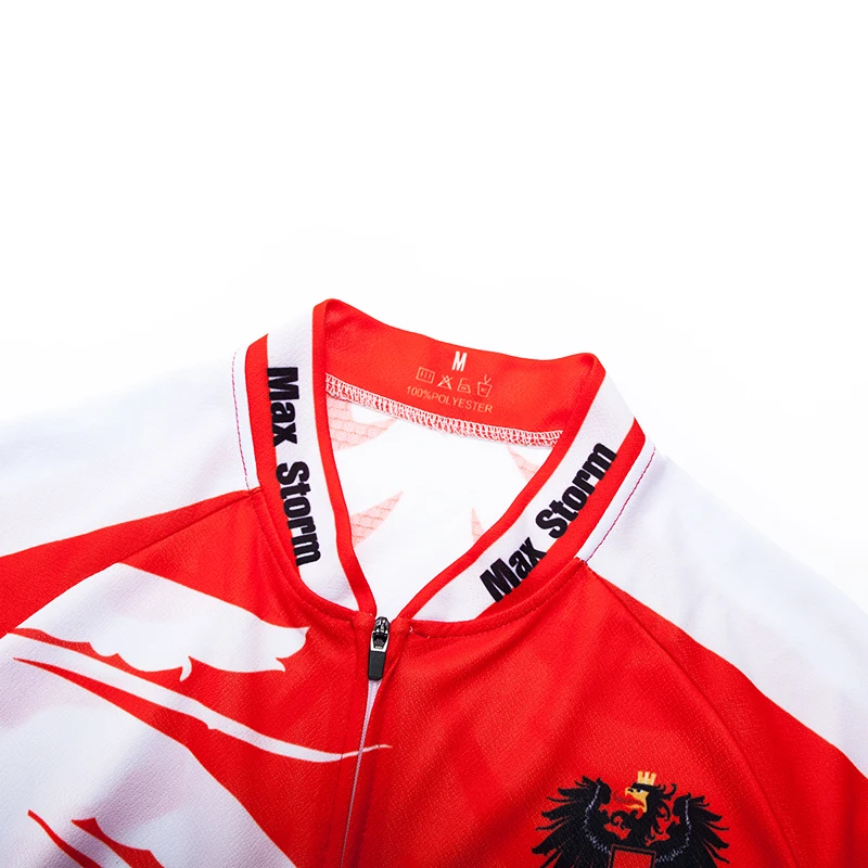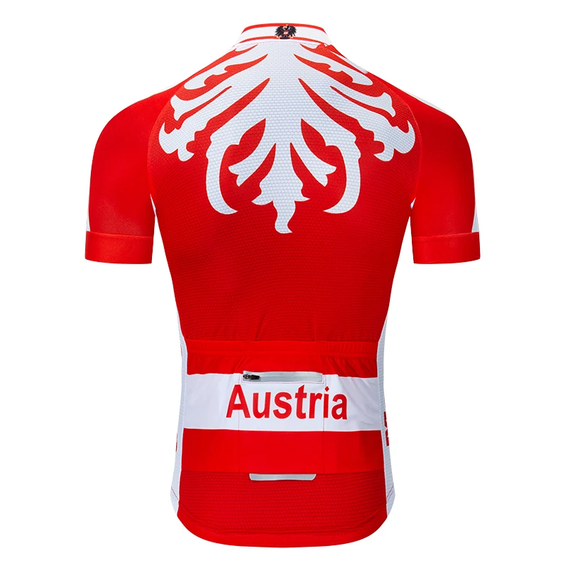Vente Meilleur 2019 Autriche Nouvelle Équipe Cyclisme Maillot Personnalisé Route de Montagne Course Top max tempête Réfléchissant zipper 4 poche Pas Cher En Ligne.