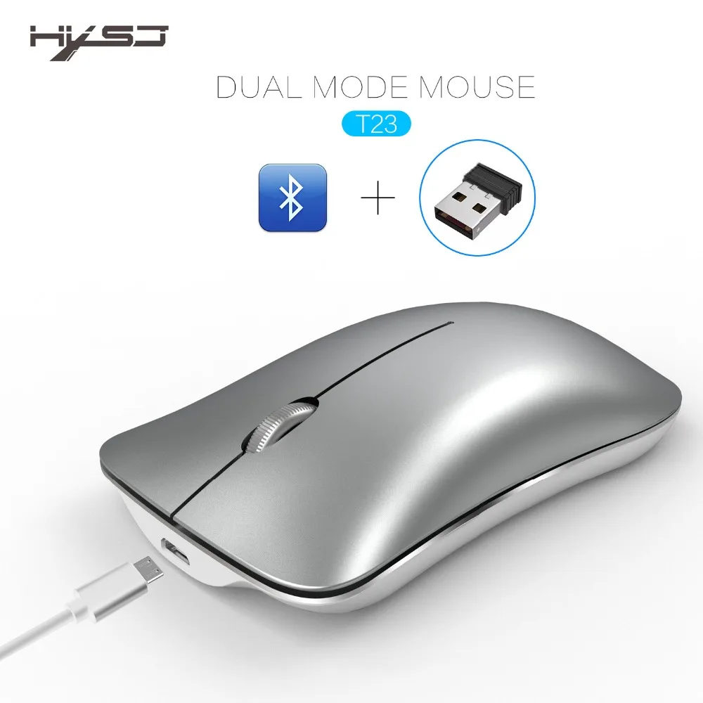 Vente Meilleur HXSJ T23 2.4g Sans Fil Souris Bluetooth 4.0 Souris Utral Mince Double Modes Ordinateur Portable Souris De Jeu pour Windows Mac Silencieux muet Bureau Pas Cher Prix.