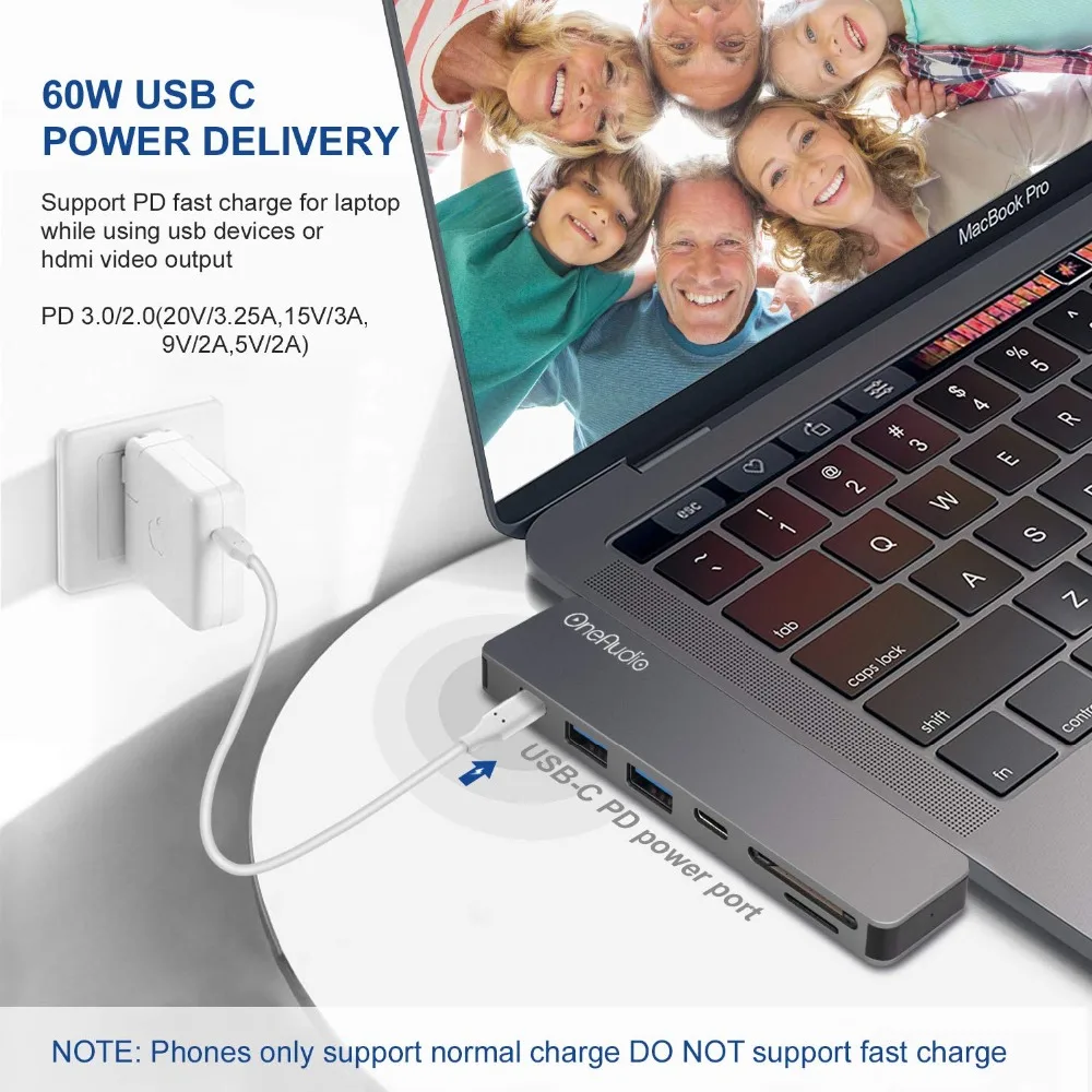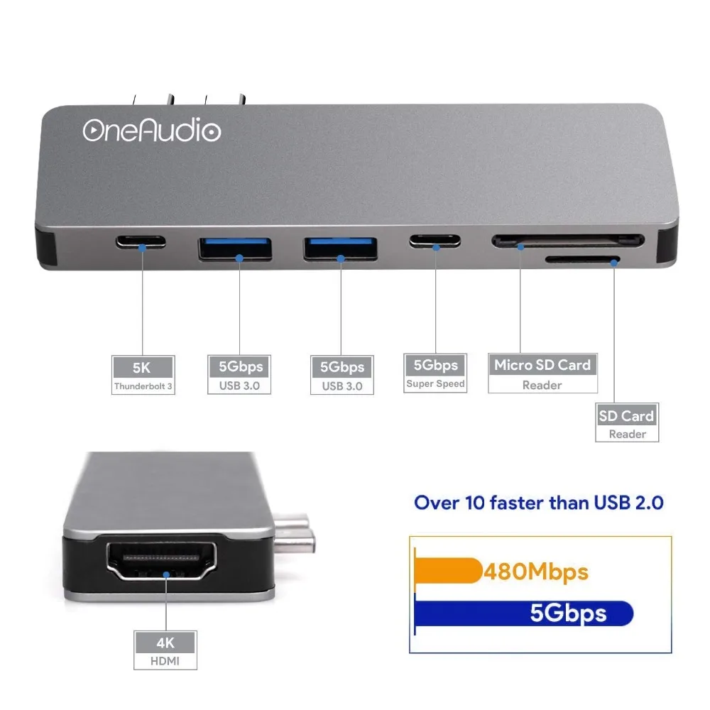 . Achat OneAudio USB C HUB Thunderbolt 3 Type C Adaptateur USB C avec 4 k HDMI PD 2 USB 3.0 Micro SD TF Lecteur de Carte pour Macbook Pro 13 15 Pas Cher En Ligne.