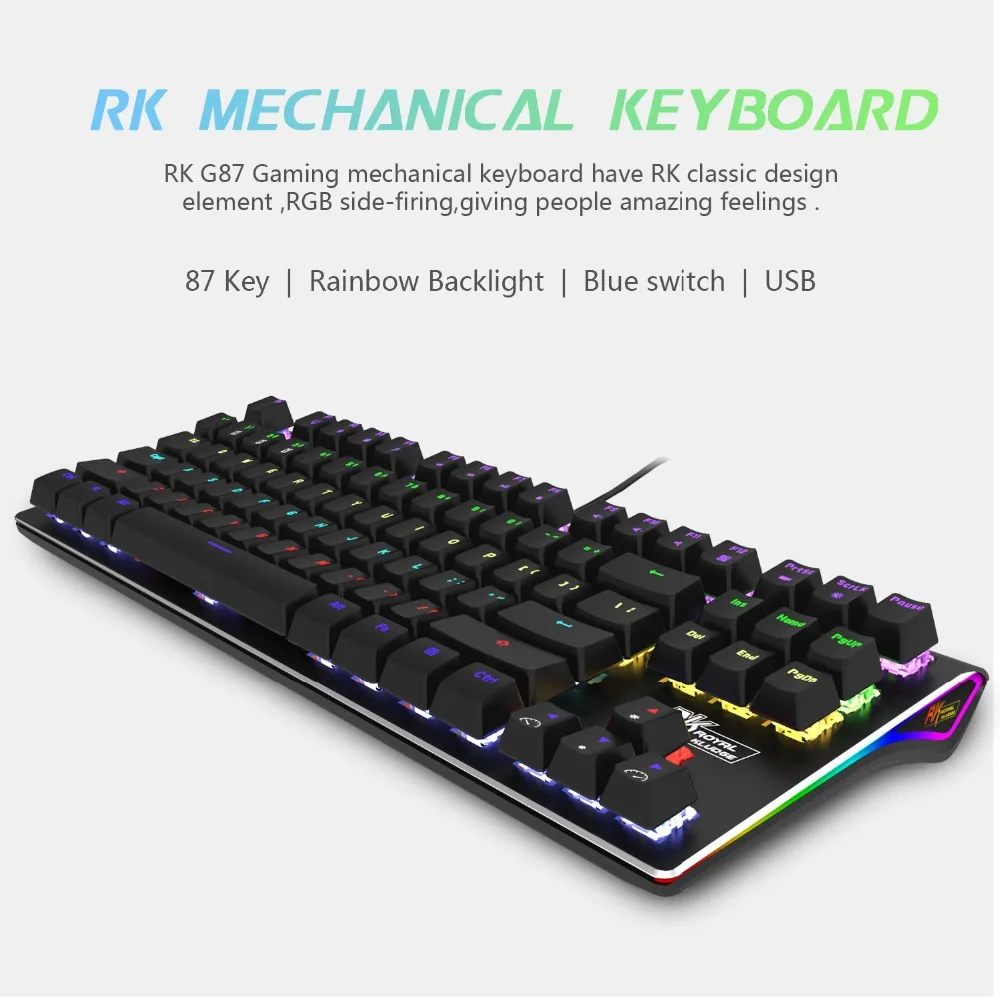 . Acheter RK G87 Mécanique Clavier 87 Anti ghosting Touches Bleu Commutateur Gaming Claviers Arc En Rétro Éclairage LED Rétro Éclairé Russe Autocollant Pas Cher En Ligne.