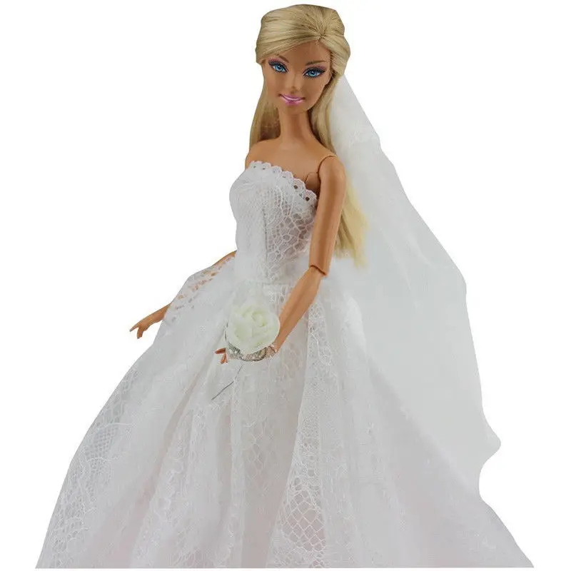 . Vente Saleaman De Mariage Robe pour Poupée Barbie Princesse de Soirée Vêtements À Long Porte Robe Outfit Set pour Poupée Barbie avec Voile Pas Cher Prix.
